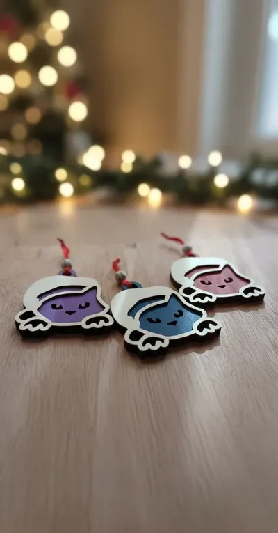 Bring festive fun to your Christmas tree with this charming set of two laser‑cut wooden ornaments featuring cute cat heads. Lightweight and easy to hang, they’re ideal for cat lovers and anyone who wants to add a playful, personal touch to their holiday décor.